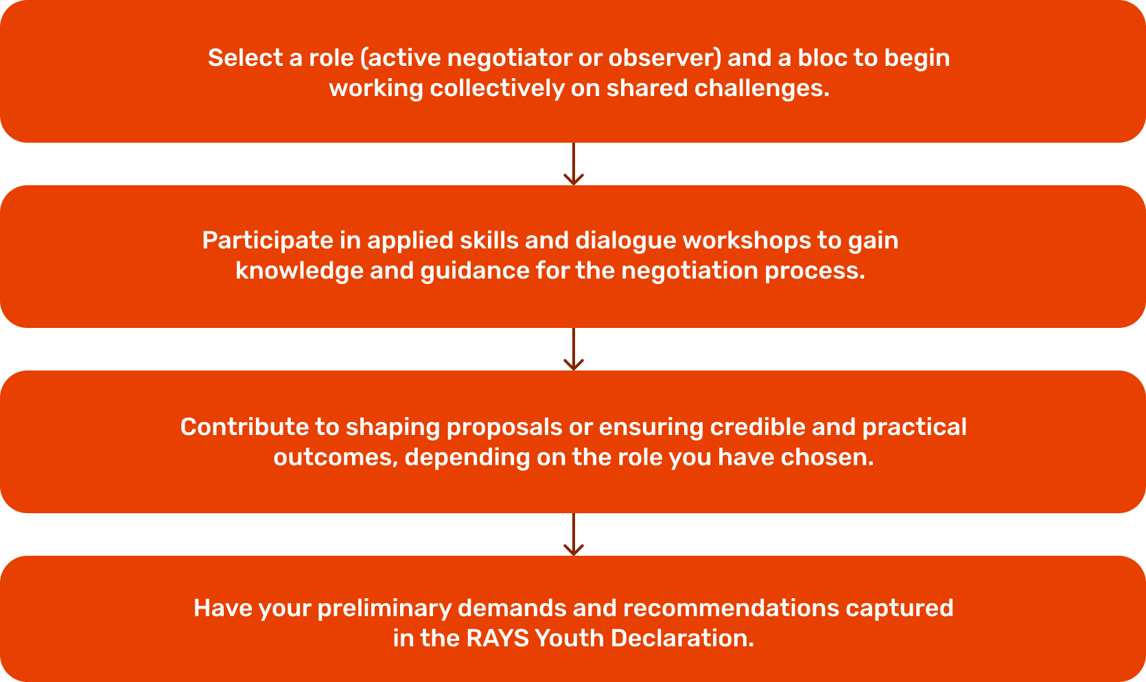 These processes culminate in the development of the RAYS Youth Declaration, a negotiated document capturing shared recommendations and demands.